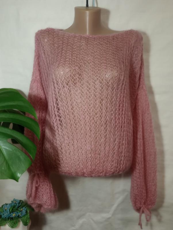 Воздушный свитер паутинки из мохера. Фасон в стиле оверсайз. Линия плеча спущена. Низ рукава можно менять протянув шнурочек на разные расстояния от манжета. Прекрасное дополнение к вашему гардеробу. Длина 56см, плечо 21см, рукав 48см, пог 60см, пот 55см, низ 36см. Замеры делали разложив изделие так же, как он лег.