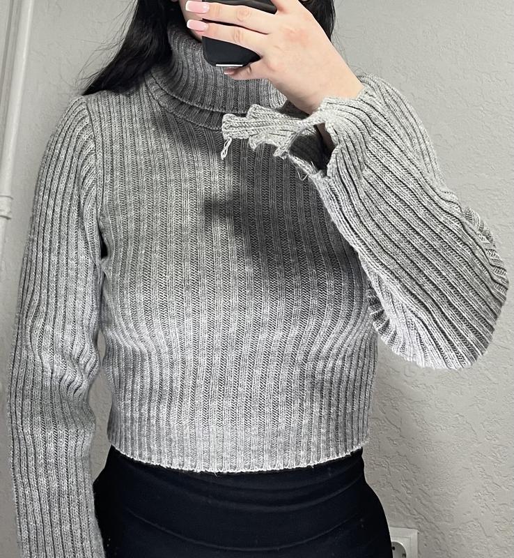 Гольфик сірий плетений Розмір XS-S Короткий з цікавими рукавами Приємний до тіла Новий та без дефектів
