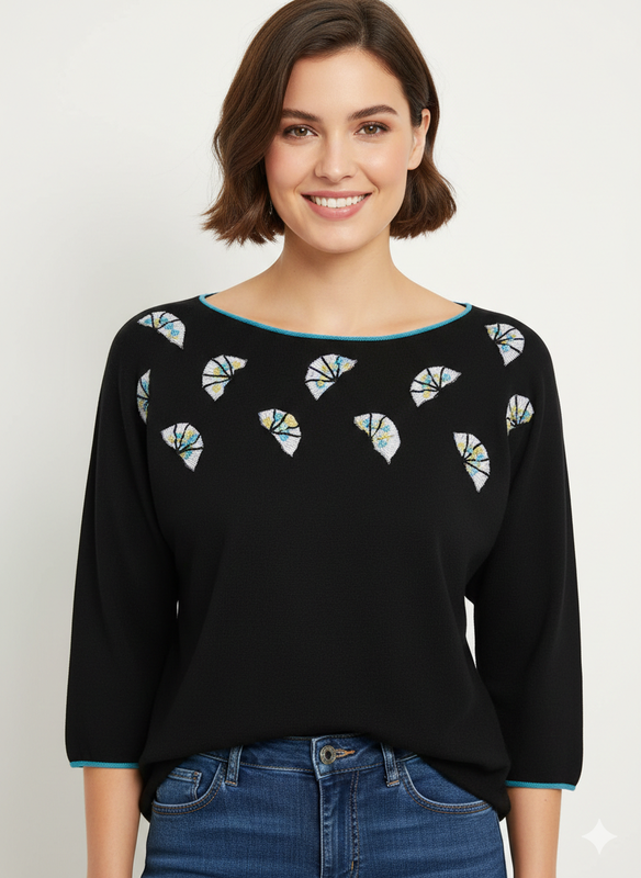 Легкая, качественная и очень комфортная модель с изысканным декором. Черная база дополнена оригинальным принтом с вышивкой и стеклярусом – выглядит дорого и эффектно. ✔ Все бирки присутствуют ✔ Материал: вискоза с шерстью ✔ Ткань мягкая, приятная к телу, не колется ✔ Рукав реглан – красиво садится по фигуре ✔ Стан - идеальный Нюанс: отсутствуют несколько стеклярусов в декоре - в носке абсолютно незаметно, выглядит естественно. 📏 Замеры: • Длина от плеча - 57 см • Рукав от ворота - 47 см • ПОГ - 47–56 см (за счет реглана) • ПОТ - 46-56 см • По низу — 48–58 см Идеальный вариант как под классические брюки, так и под джинсы — стильная база с акцентом 🌿