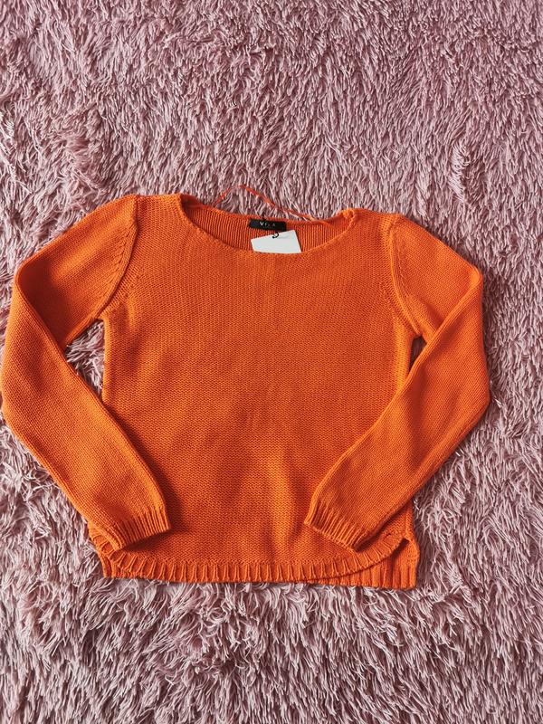 Свитер бренда vila, трендовая го оранжевого цвета, в составе присутствует хлопок. Размер указан l, также подойдет на С и М.