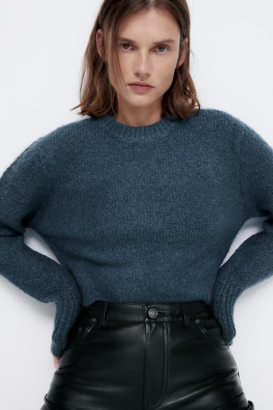 СВЕТР ZARA, мінімально вкороченого фасону, ворсистої текстури Size: M Заміри: плечі 46, ширина 53, довжина 46, рукав від плеча 62 Склад тканини: акрил/нейлон/поліестер/вовна Стан: ідеаль