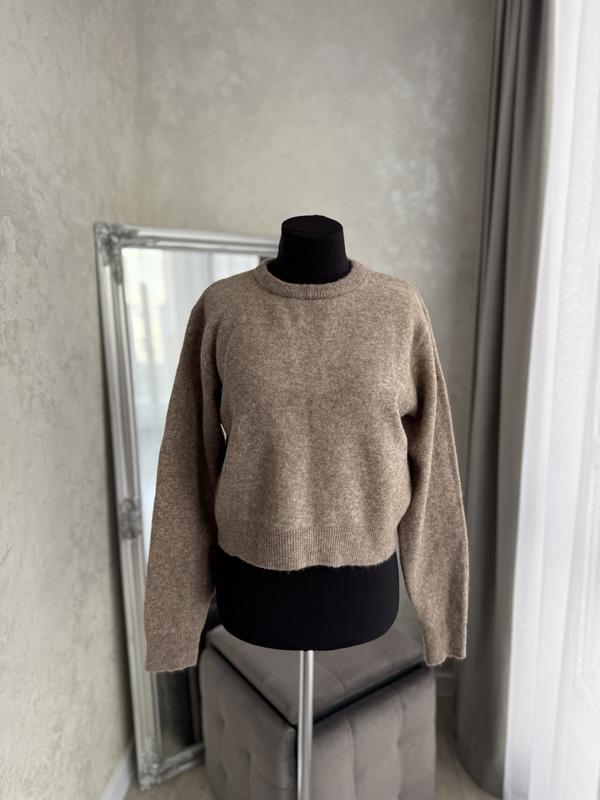 Базовий светр Zara красивого кольору кемел❤️ В складі 35% лама, 32% лана, 29% поліамід Розмір М Заміри Плечі піб 43 см Під пахвами піб 53 см Рукав від плеча 60 см Довжина 48 см