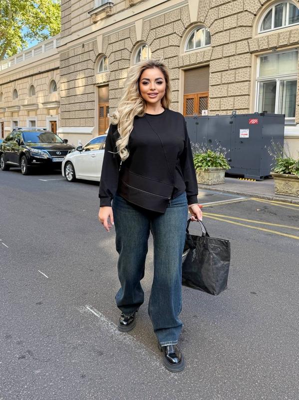 ✅✅✅ НОВИНКА , Кофта Модель 1122vl Розміри : 46-48,50-52,54-56,58-60 Кольори : капучино, чорний, білий Тканина : двонитка гарної якості , вставка : крепкостюмка Кофта вільного, цікавого крою : по низу вставка з крепкостюмки , прикрашена молнією з канатом в колір основи . На рукавах манжети . Цікавий крій , який приховує недоліки фігури Параметри моделі ОГ100, ОТ76, ОС106, на ній 46-48; параметри моделі-батал ОГ110, ОТ86, ОС112, зріст 165см , на ній розмір 50-52. Заміри виробу по зовнішньому шву: Розмір 46-48: Обʼєм грудей 110 Обʼєм талії 110 Довжина рукава від горловини 65 Довжина по спинці 58 Розмір 50-52: Обʼєм грудей 118 Обʼєм талії 118 Довжина рукава від горловини 67 Довжина по спинці 59 Розмір 54-56: Обʼєм грудей 128 Обʼєм талії 128 Довжина рукава від горловини 69 Довжина по спинці 59 Розмір 58-60: Обʼєм грудей 138 Обʼєм талії 138 Довжина рукава від горловини 71 Довжина по спинці 60