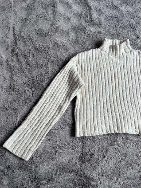Молочний вкорочений гольфовий светр від Bershka