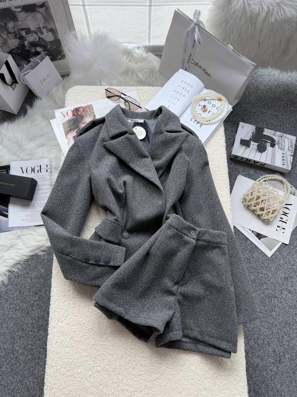 🔥 Новинка 🔥 ФОТО РЕАЛ Костюмчик 💓 851 🖇Мод : 8052 🧶Тканина: кашемір+підкладка 📐Розмір: 42-44 , 46-48 🎨Колір: сірий