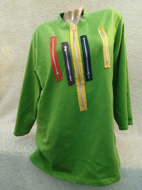 Цікава кофтейка, замочки робочі, бавовна, наявність дуже гарна НО грудей 64-66, НО стегна 64-67, рукав від коміра 65, довжина 76 Замери вгору половина