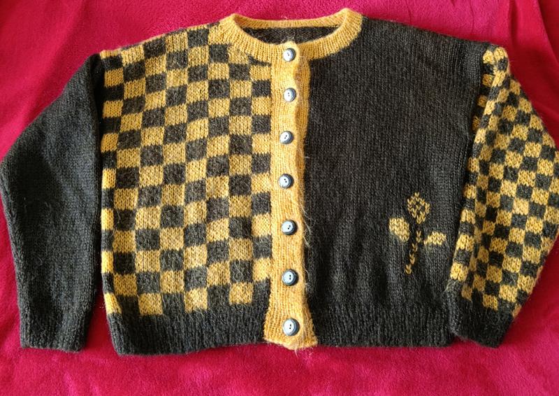 Вязаный бомбер из мохера в интересном дизайне болотно-лтых цветов.Очень теплый.