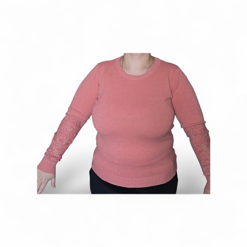 46-48 размер (на фото одето на больший размер для демонстрации). Без недостатков. Цвет очень приятный. Мягкий, теплый.