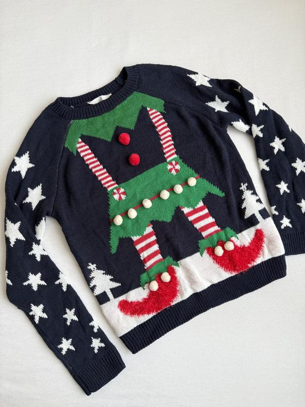 Тепленький святковий светр, в дуже гарному стані, підійде для M/L