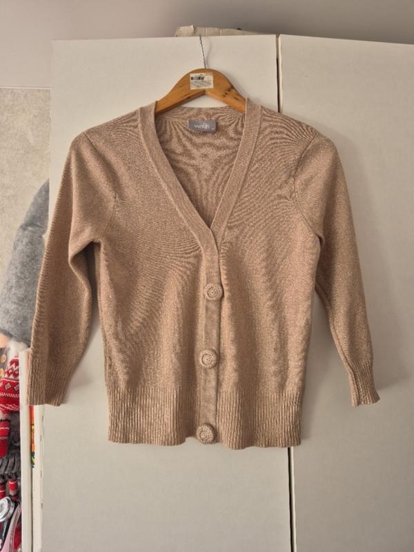 Кофта Wallis, размер 12 (М,L) в идеальном состоянии.Длина 57см, ширина наравом 52см, рукав 3/4.Тянется отлично.Очень хорошее качество.