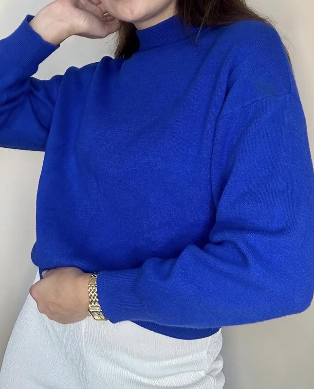 Светр глибокого синього кольору 💙 Трендовий, теплий і дуже приємний до тіла. Стан 4/5 — є дуже маленька дирочка спереду (при носінні непомітна) і потрібно освіжити пранням. В іншому — стан чудовий, тканина не розтягнута. 📏 Заміри: ОГ — 56 см (добре тягнеться, але має сидіти вільно) Довжина — 52 см Рукав від шиї — 66 см По бірці — розмір М Склад — 52% натуральної тканини, решта синтетика для м’якості. Ідеальна горловина — красиво тримає форму. Віддаю дешево через дрібний нюанс 💙
