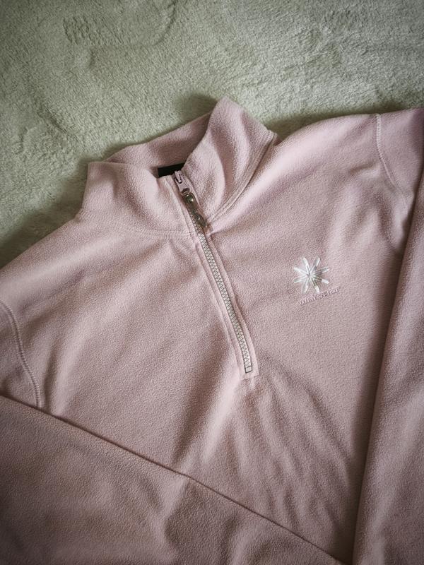 Флисовая кофта розового цвета, в красивом состоянии. Замеры в полразмера: плечи 44 см, подмышками 54 тянется до 60 см. Длина рукава от 62 см. Длина флиски 61 см.