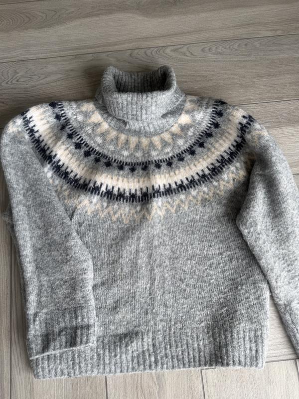 Теплий светр з модним орнаментом ,у складі містить 5% альпаки.Розмір вказаний xl,можна на l -m.Має ковтунці,які легко забрати