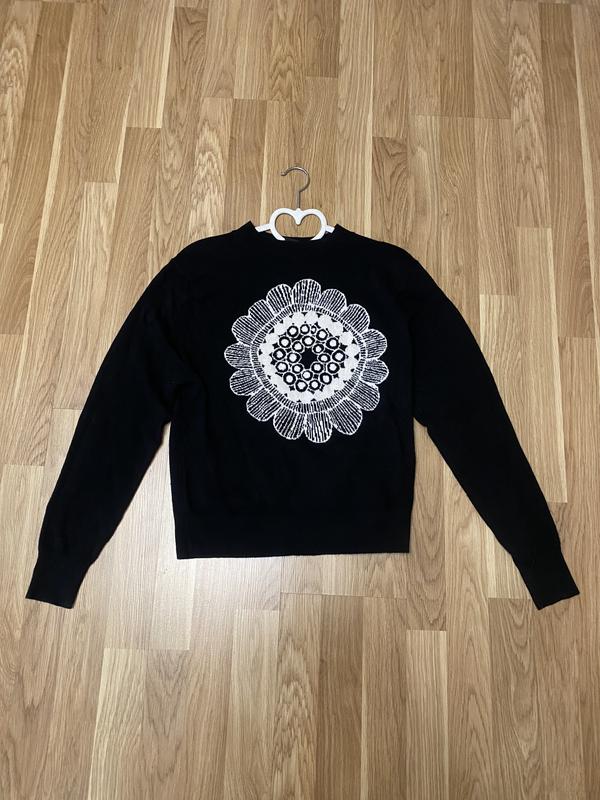 Светр Marimekko з кашеміром насиченого чорного кольору з ефектним візерунком. Дуже теплий, комфортний, зручний. Розмір S. Склад: 90% вовна, 10% кашемір. Для консультації та замовлення пишіть