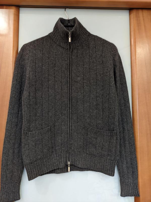 тоненькая кофта кашемир на молнии, длина 62 см, плечи 38 см, рукав 67 см, ширина между подмышками 48 см, ширина 45 см.