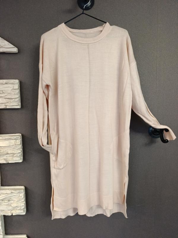 Коттоновая, базовая тигуника с разрезами по бокам. Пудроаго цвета. Размер Л/ХЛ