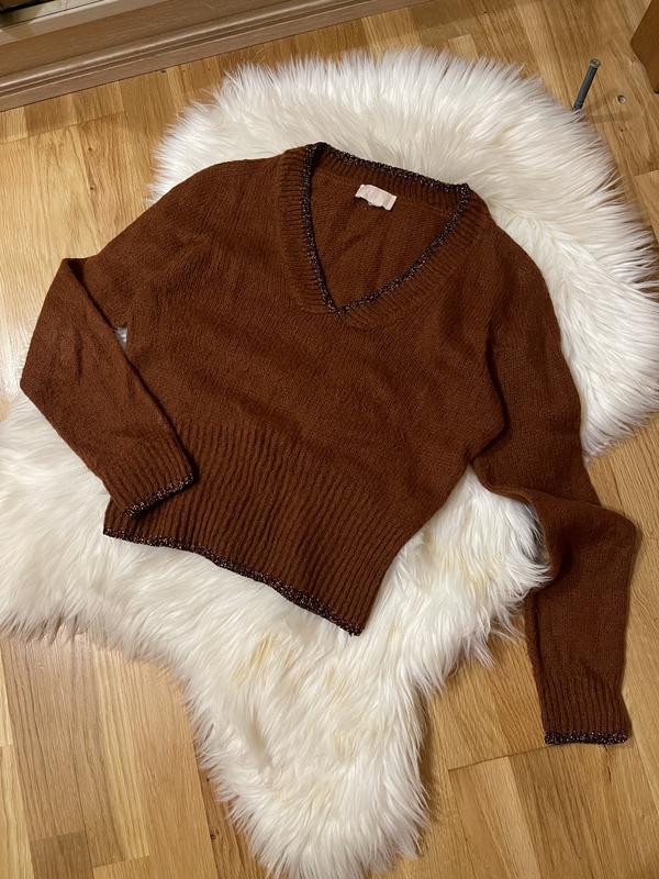 Укорочений нарядний светрик Рукава в виріз оздоблені золотою ниткою