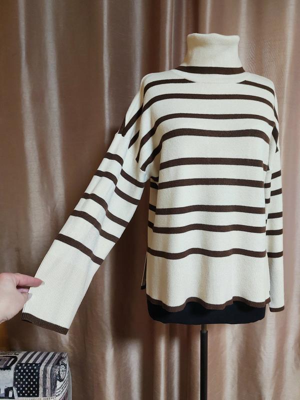 Шикарный, свободного кроя, в трендовый принт и цвет, модный свитер. Моделька оверсайз, линия плеча спущена, широкие рукава, высокая горловина с подкатом, снизу по боку есть небольшие разрезы. Ткань суперовая, очень нежная, мягкая, хорошо тянется. Размер указан M но реально идет и на L и на XL👌. Длина 63см, пог 57см, пот 52см, низ 55см, рукав от горловины 78см.