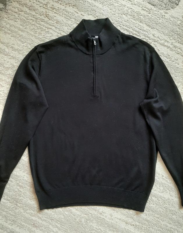 Тонкий шерстяной свитер с застежкой молнией. Длина 68см, пог 58см. Ньюанс - зашито на локте (последнее фото).