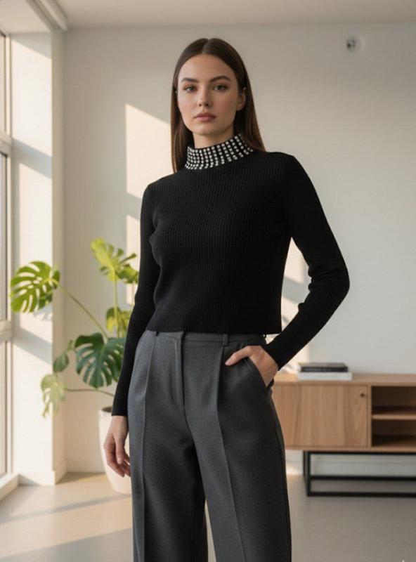 Вкорочений светр з камінцями Розмір 42-46 Тканина кашемір рубчик