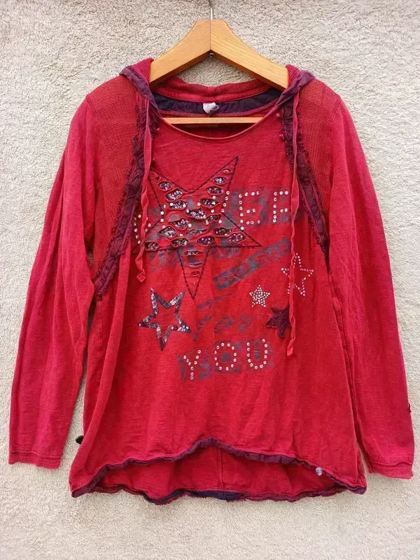 Тонкая трикотажная кофтика с капюшоном, становление красиво ПО груди 53-58, ПО низу 57-59, рукав 62, длина 65/70 Замеры отличий половина