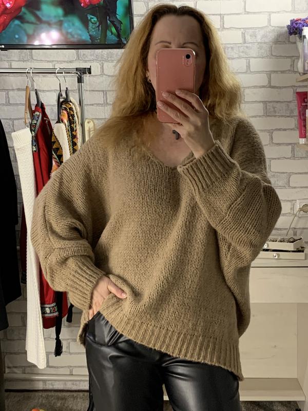 Джемпер оверсайз в новому стані! Светр має об’ємний силует, який не облягає фігуру, що забезпечує комфорт та невимушеність образу. Глибоке декольте візуально подовжує шию та робить акцент на зоні грудей. Спущена лінія плеча додає виробу розслабленості, що є типовим для молодіжного та повсякденного стилів. Добре поєднується з вузькими штанами, легінсами або джинсами. 57% акрилу, 7% вовни, 7% віскози і поліамід Підійде на розміри L-3XL По грудях 80, внизу 58, рукав від горловини 63, довжина 66 см