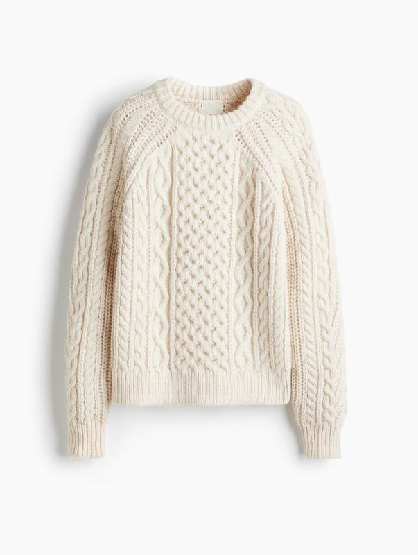 Мягкий свитер крупной вязки с ребристым круглым вырезом и длинными рукавами реглан со складкой для дополнительного объема. Ребристые манжеты и нижний край. Н&М Размер М Длина 55. Пог 52. Рукав от шеи 74