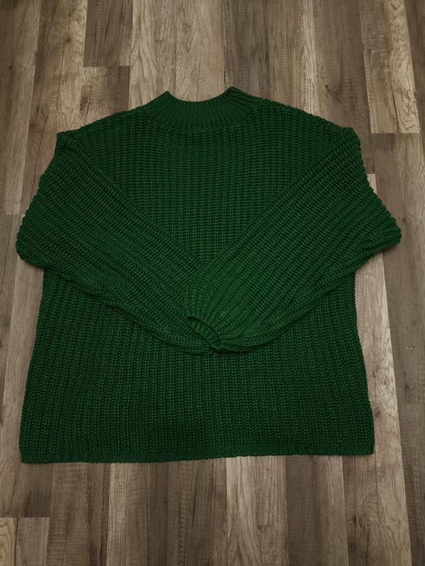 Свитер женский зеленого цвета Теплый вязаный свитер удлиненный, прямого кроя с небольшим воротником Размер S Обхват грудей: 84-92 см. Обхват талии: 64-72 см. Обхват стегон: 89-96 см.