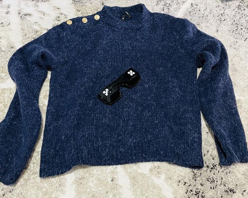 Светр виконаний із еластичного трикотажу середньої товщини. Простий, необмежуючий рухів фасон. - Круглий, ребристий виріз. - Довгий рукав. - Ребриста текстура матеріалу робить його надзвичайно еластичним та ідеально прилягає до тіла. - Плетіння з декоративною металевою ниткою. - Довжина рукава: 60cm. - Довжина: 59 cm. - Ширина під пахвами:48cm.