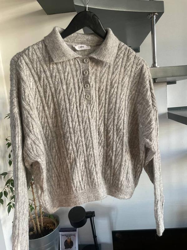 Свитер Mango с фактурной вязкой серого цвета. Модель с воротником polo и пуговицами. Мягкий тонкий трикотаж, приятный к телу, хорошо держит форму. Размер: M Состояние: идеальный