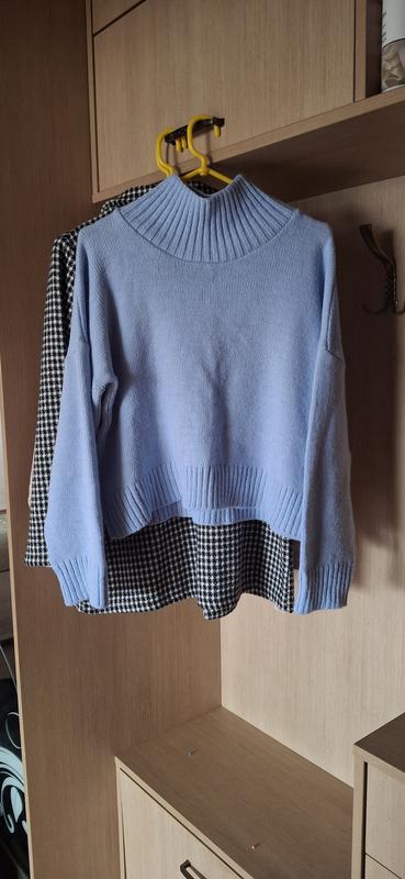 Нежно голубой шерстяной свитер. Размер М-Л, красиво тянется.