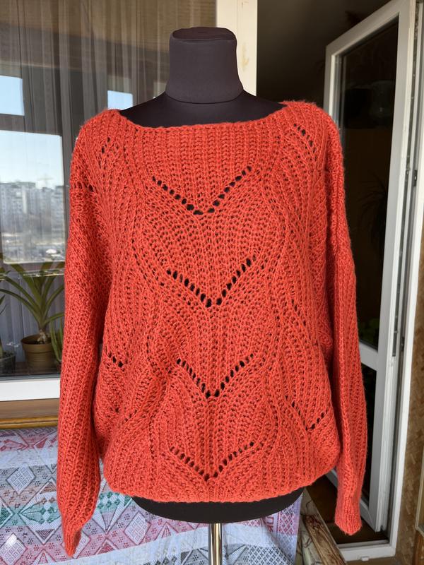 Светр яскравого мандаринового кольору. Стан ідеальний. Заміри Довжина 57,5 Напів обʼєм грудей 67 Рукав від шиї 70
