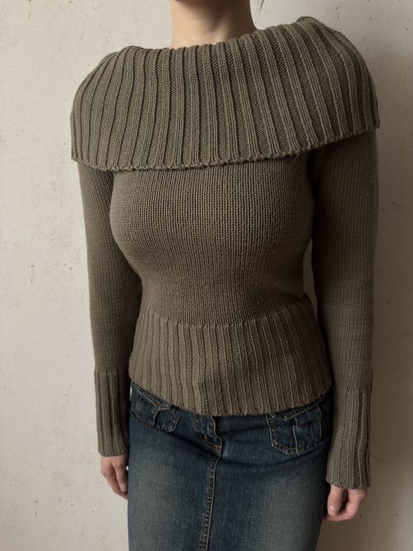Свитер с открытыми плечами S-M Полуобхват в груди - 38 см Длина посреди - 45 см Длина рукава - 63 см