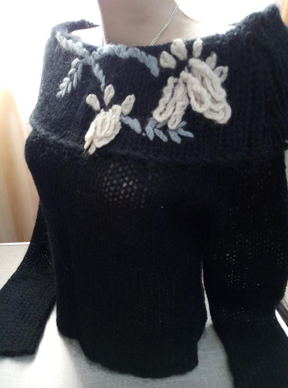 Красивейший свитер,теплый и нарядный,с полуоткрытыми плечами.Размер S.