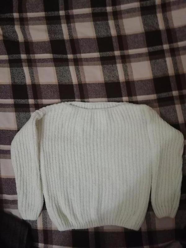 Продам свитер – оверсайз белого цвета. Длина 56 см, рукав спущен, длина рукава 50 см. Очень теплый. Не носился. Размер M-L (46-48). Состав 50% шерсть и 50% акрил