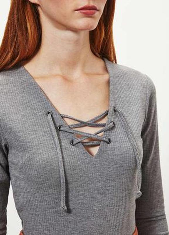 Miss Selfridge топ со шнуровкой Ткань джерси, средней плотности, в рубчик, тянется Состав - 64% полиэстер, 32% вискоза, 4% эластан Размер - 8/36/С Плечи - 35 см Длина рукава - 59 см ПОГ - 38 см (тянется до 47 см) Длина топа от плеча- 53 см Состояние отличное