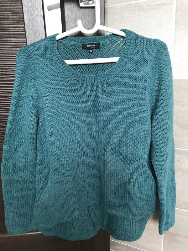 Тёплая кофта, машинная вязка, спереди карманы, спереди короче, размер 38