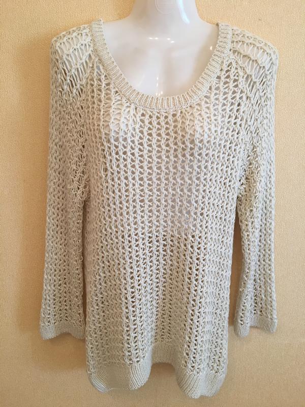 Размер по бирке М. Замеры: длина 61, рукав реглан замер от горловины - 60см, низ резинка 45см, ПОГ 50см. Цвет - светлый бежевый, приятный на ощуп, без нюансов. Фото на теле нет.