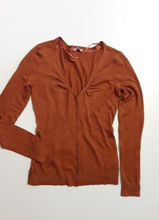 Состояние очень хорошее Состав 70% вискоза 30% полиамид Ширина под мышками 40,5 см Длинна от середины плеча вниз 59 см Длинна рукава от плеча 62 см Цвет ржаво-коричневый