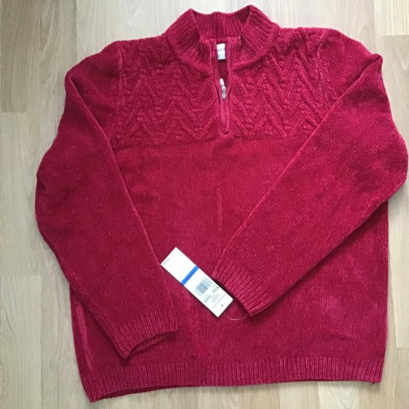 Нова з бірками жіноча кофта червоного кольору від відомого американського бренду. Невисокий комір із застібкою на замочку. Довгий рукав на манжеті.Воротнік , низ рукава та виробу на трикотажній резинці. Спереді кофтинки вив'пов'язана кокетка із»косичок». Кофта дуже комфортна, середньої товщини, надзвичайно м'яка та затишна. Чудово поєднується із низом в стилі «кежуал» так із класикою. Лаконічний Крій і не громіздкий . 100% акрил . Привезена із США. Розмір XL може підійти і на L. Обхват грудей -104см Довжина рукава 60см Довжина-59см