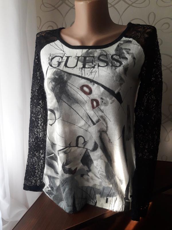 Крутая и очень стильная кофточка с кружевными руковами.От известного бренда Guess(100% оригинал)Качество изумительное.