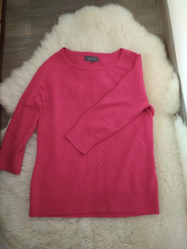 Кофта без дефектів, підійде на 46-48 розмір, гарний малиновий колір, приємна до тіла, довжина по спинці 61см, довжина рукава 53см, рукав 3/4, півобхват грудей 49см