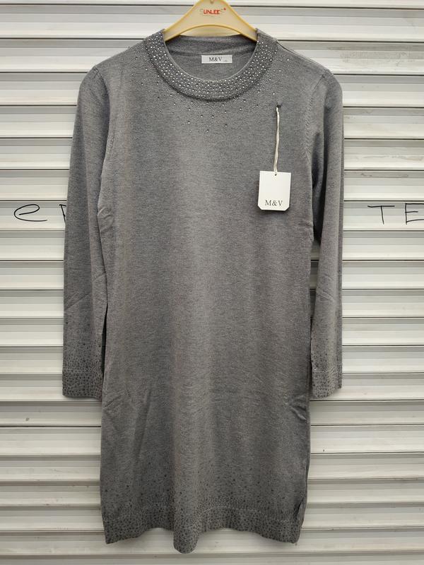 Тепленьке плаття-туніка, по горловині, на рукавах і низу розсип з стразиків ПОГ 50, довжина 93 виробництво Польща