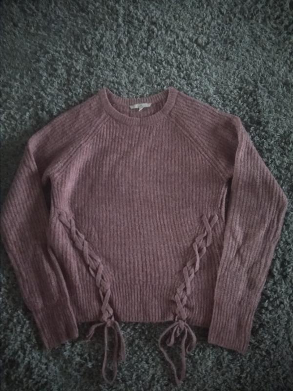 Новый, нарядный грязно-розового цвета свитер Со шнуровкой Спущенной линией рукава Д-57СМ Ширина и подмышки к подмышки - 45см Рукава - 76см