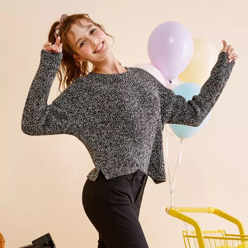 Серый меланжевый свитер от Select. Размер 10. Спереди укорочён. Состояние хорошое, без катышек.