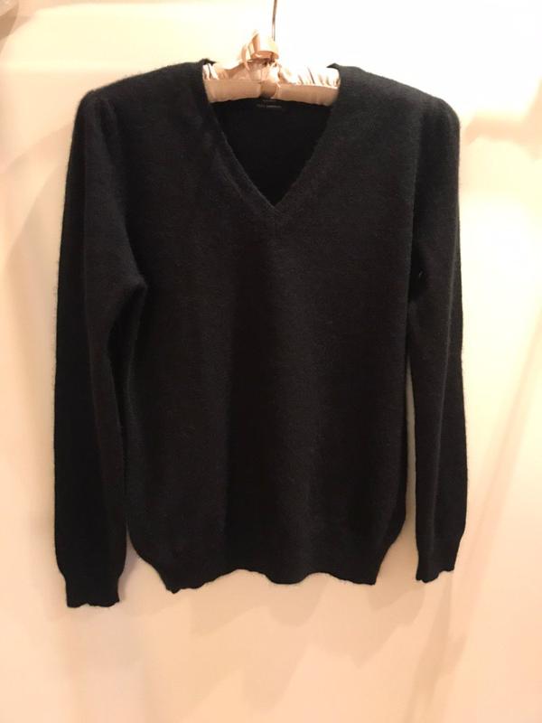 Черный кашемировый свитер. Качество отличное, чистый кашемир, очень мягкий, теплый. Станет Вашей любимой базовой вещью. Размер по этикетке - 14, может быть на M. замеры: полуобхват груди - 44 длина - 60. Если остались вопросы - пишите, уточняйте! Всегда с удовольствием отвечу на все Ваши вопросы!