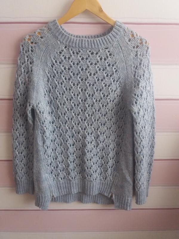 Классный ажурный свитер как новый. Голубой цвет. В реальности более насыщенный.