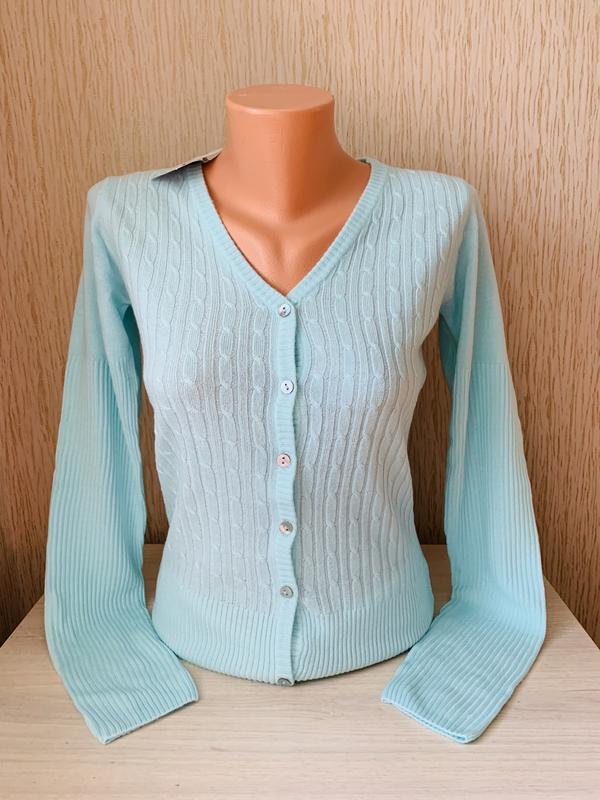 Бренд: Modis Розмір{44} на обхват грудей до 84 см Довжина кофти: 65 см ПОГ 42 см Дуже приємний і ніжний до тіла. Приталений крій; V-подібний виріз; застібка на гудзики. Новий