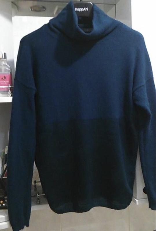 Очень красивый разно фактурный свитер-гольф.Красивое сочетание цветов. Размер указан XS,идёт и на S.