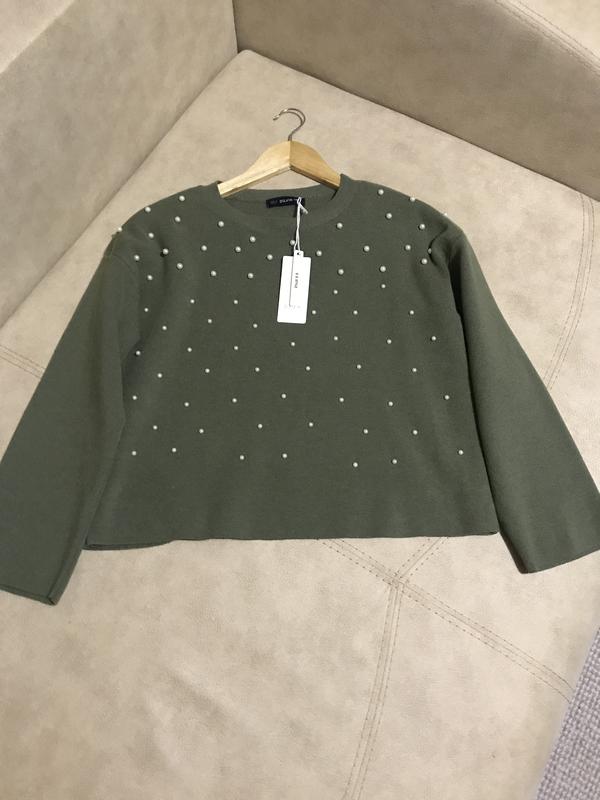 Продам новую нарядную кофточку ,цвет хаки ,с жемчужинками спереди ,размер универсал